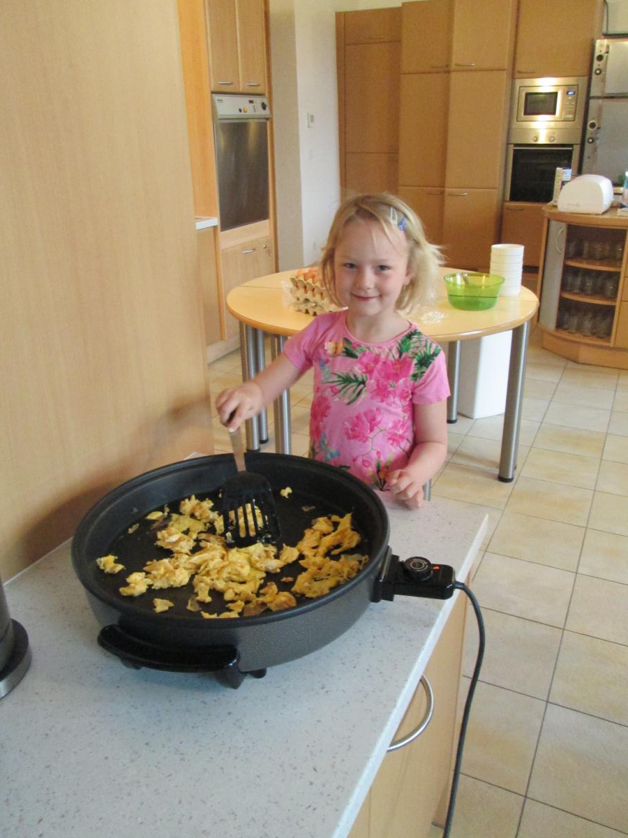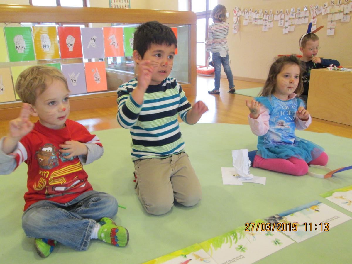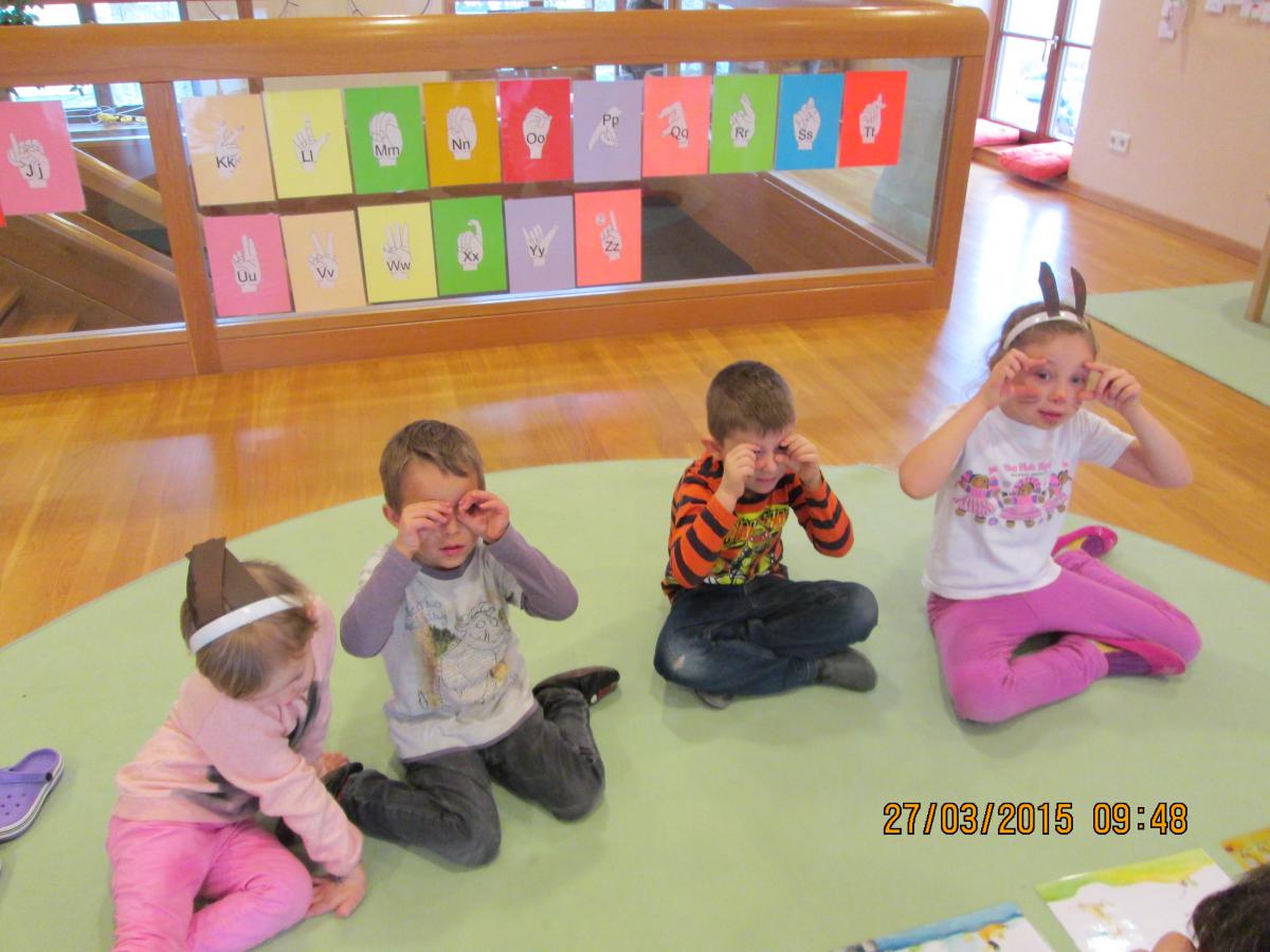 Ob beim Hennenrennen, beim Verklanglichen und Gebärden einer Geschichte, beim Kochen eines Osterhasenspiegeleis, beim Basteln von Hasenohren oder bei der Ostereiersuche im Turnsaal jeder hatte großen Spaß.