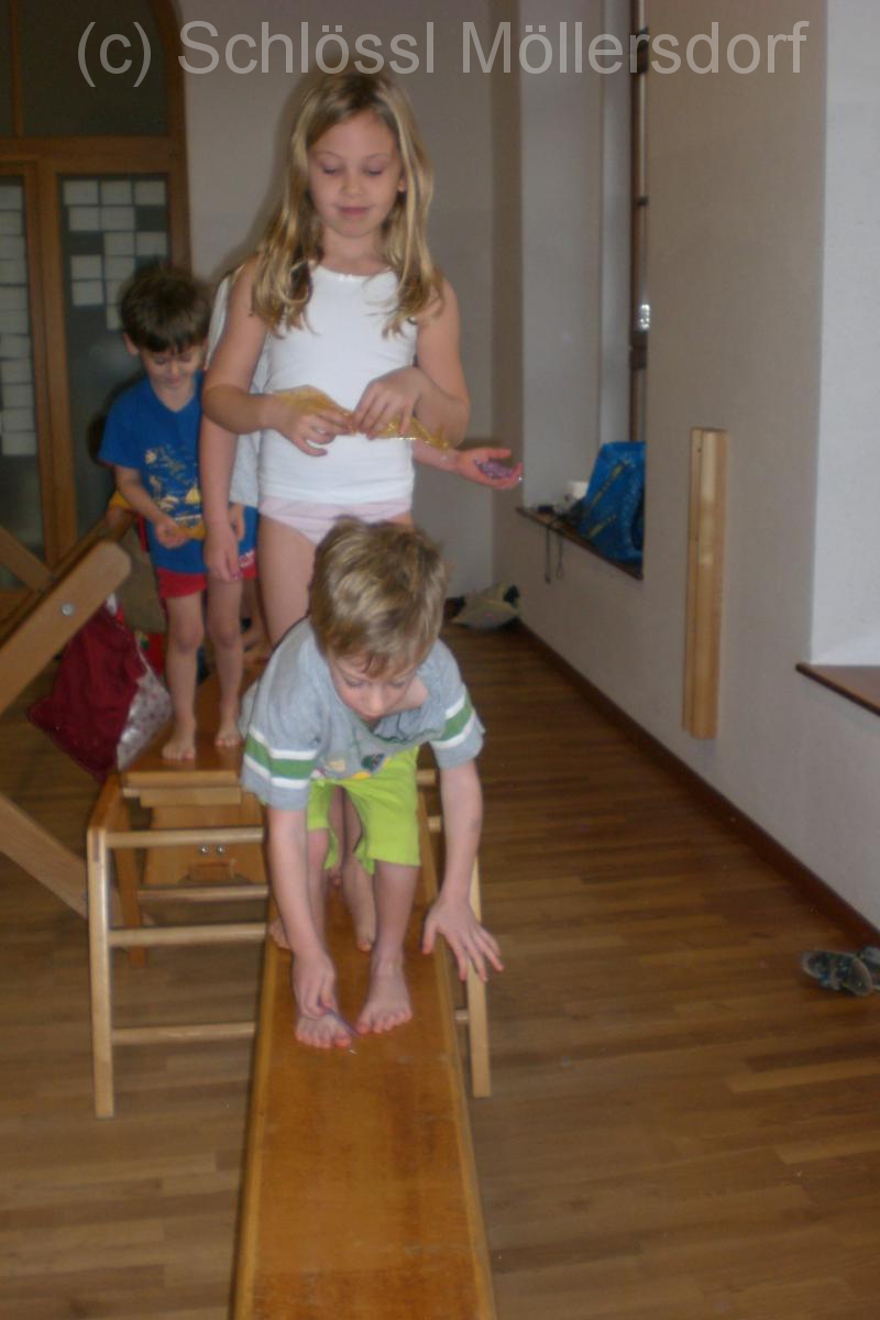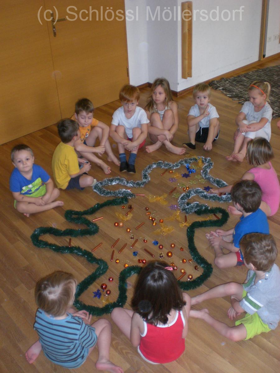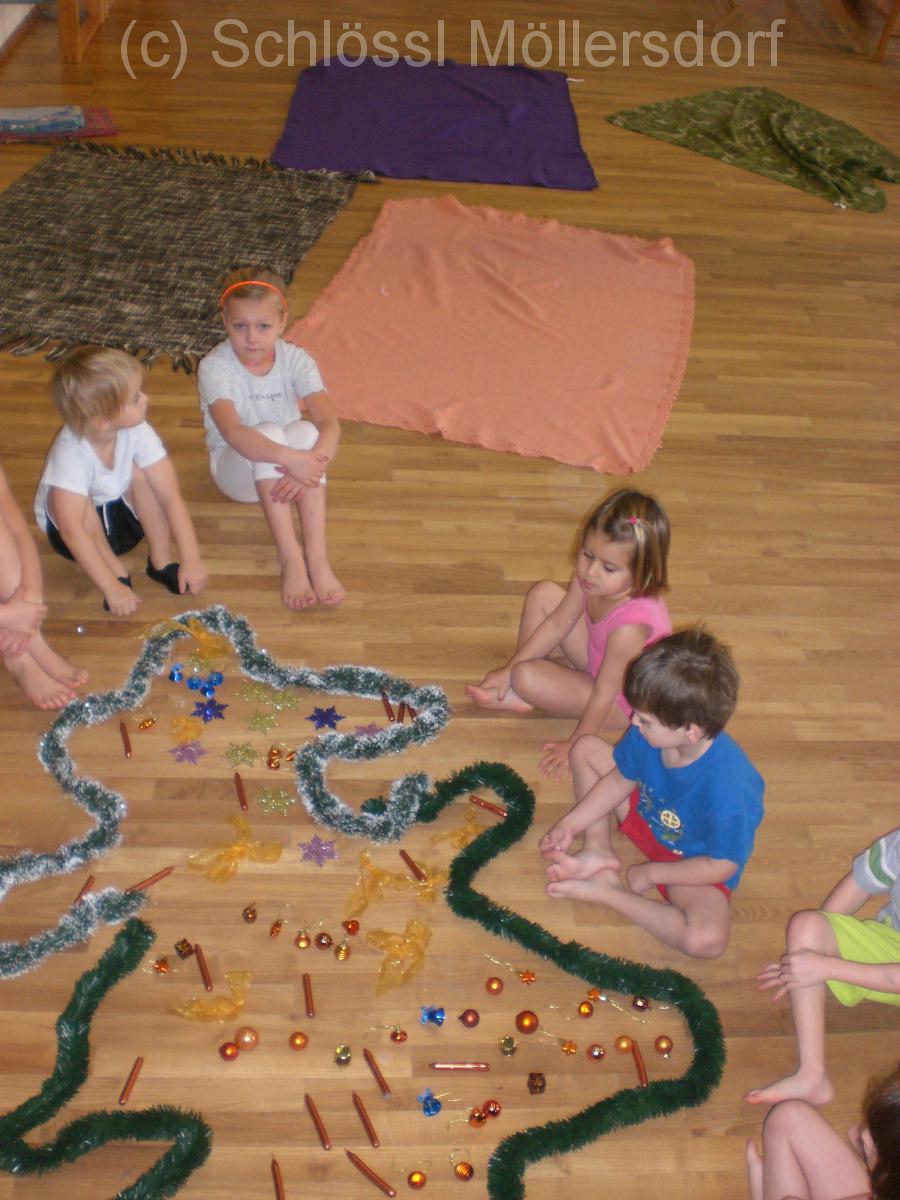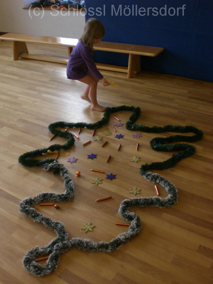 In der letzten Woche haben wir auch Weihnachten in den Bewegungsraum geholt. Über die Bewegungsbahn haben die Kinder den Weihnachtsbaum gemeinsam geschmückt.