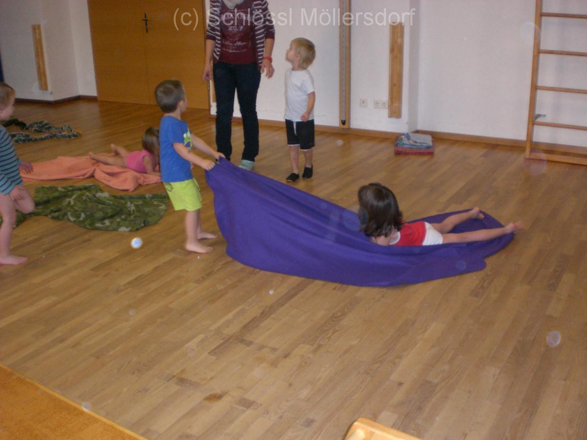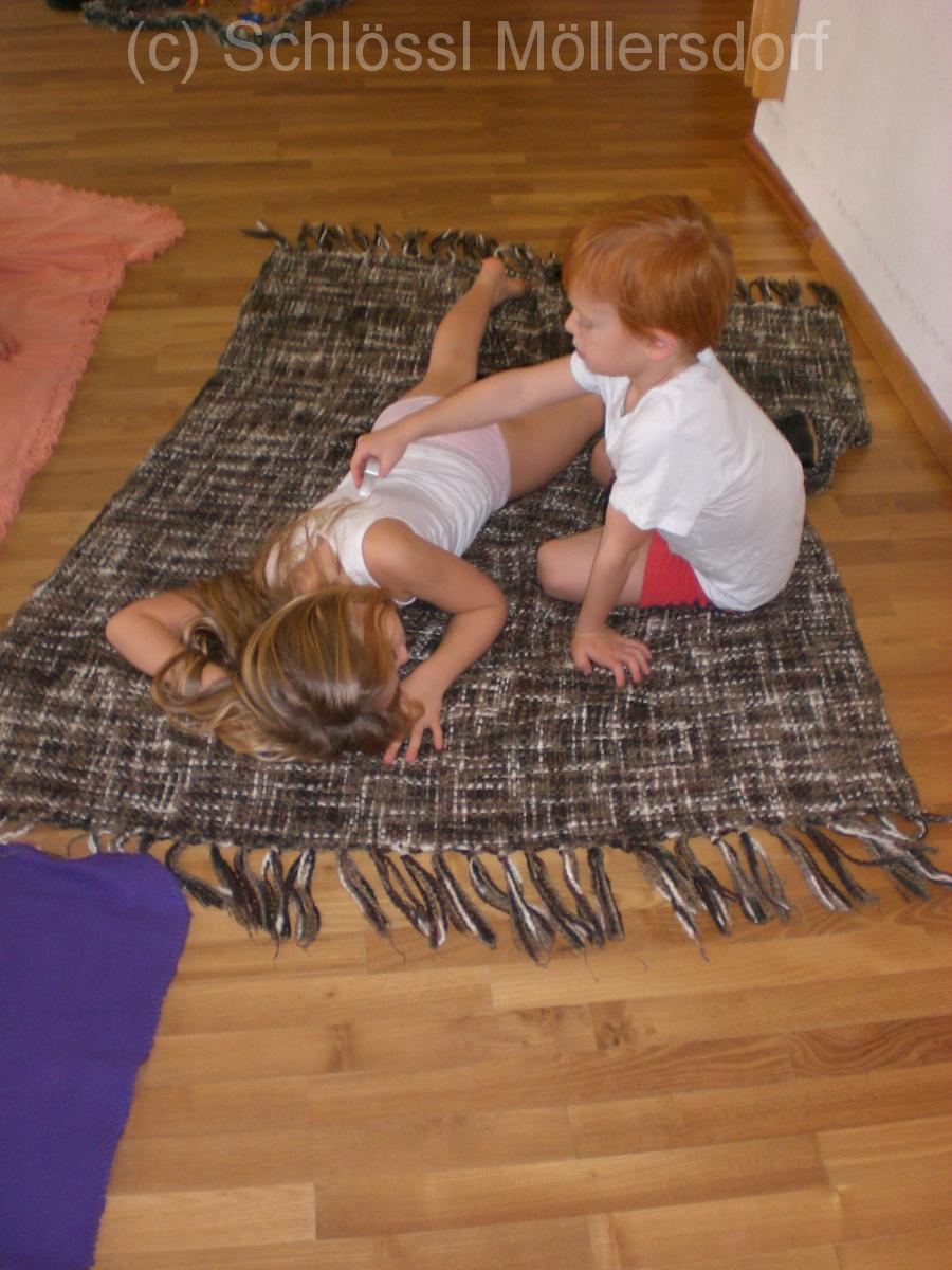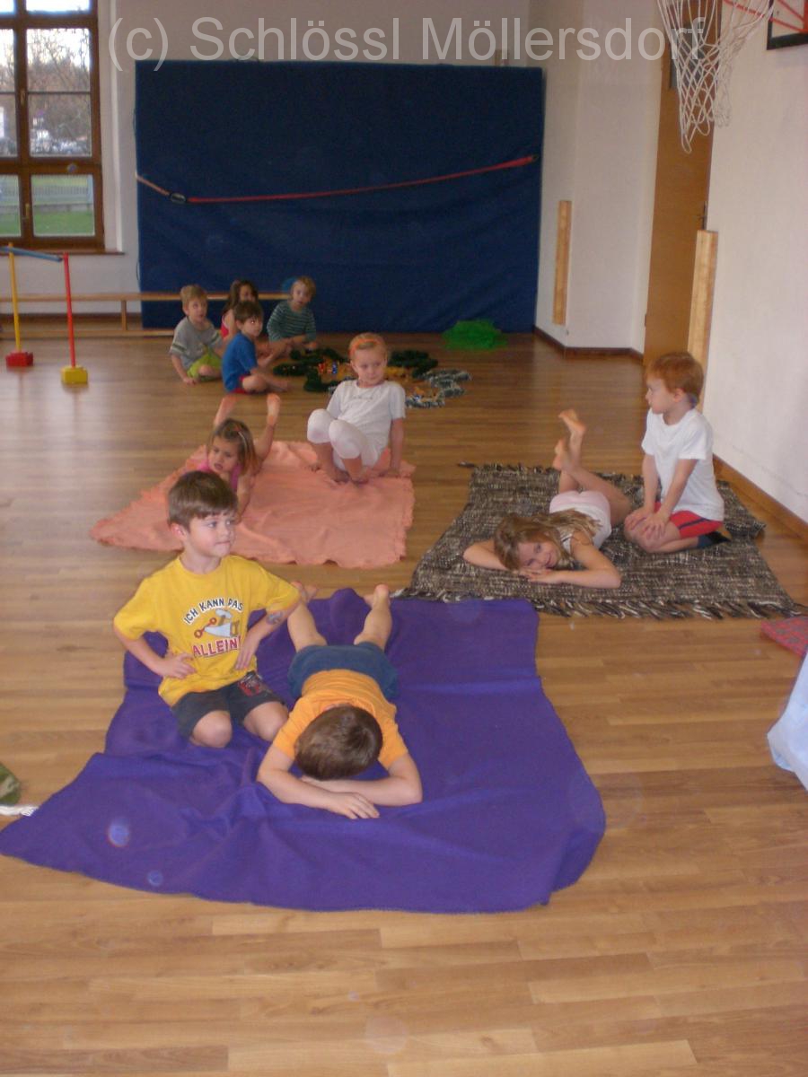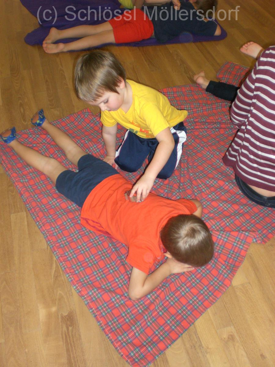 Ziel war die Achtsamkeit mit dem Material, Ästhetik und das Gruppengefühl zu stärken. Auch Kraft benötigten wir. Das Kind auf der Decke stellte den Weihnachtsbaum dar, den ein weiteres „nach Hause“ schleppt. Zum Abschluss durften sich die Kinder noch mit Keksausstechern am Rücken massieren. Mit ruhiger Musik im Hintergrund, gingen die Kinder entspannt wieder in die Gruppen.
