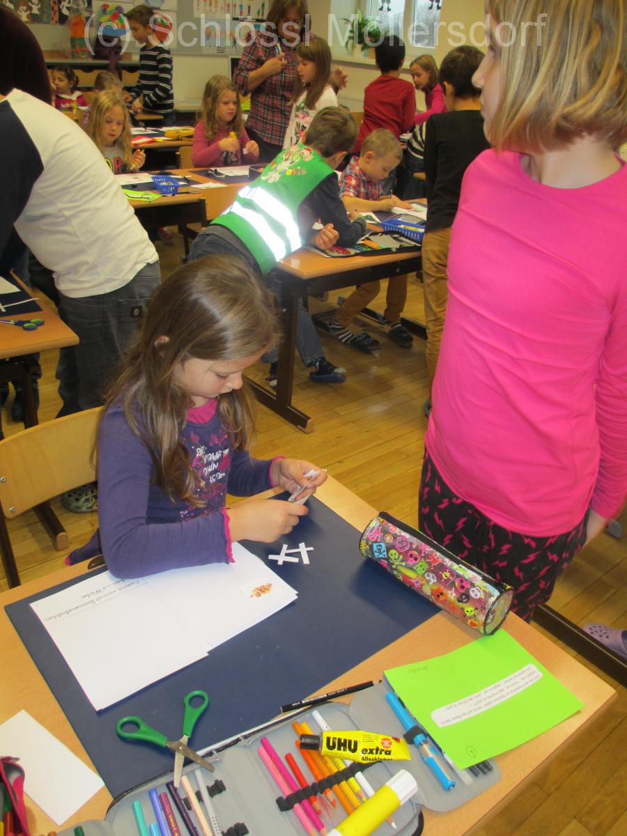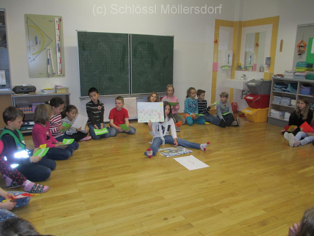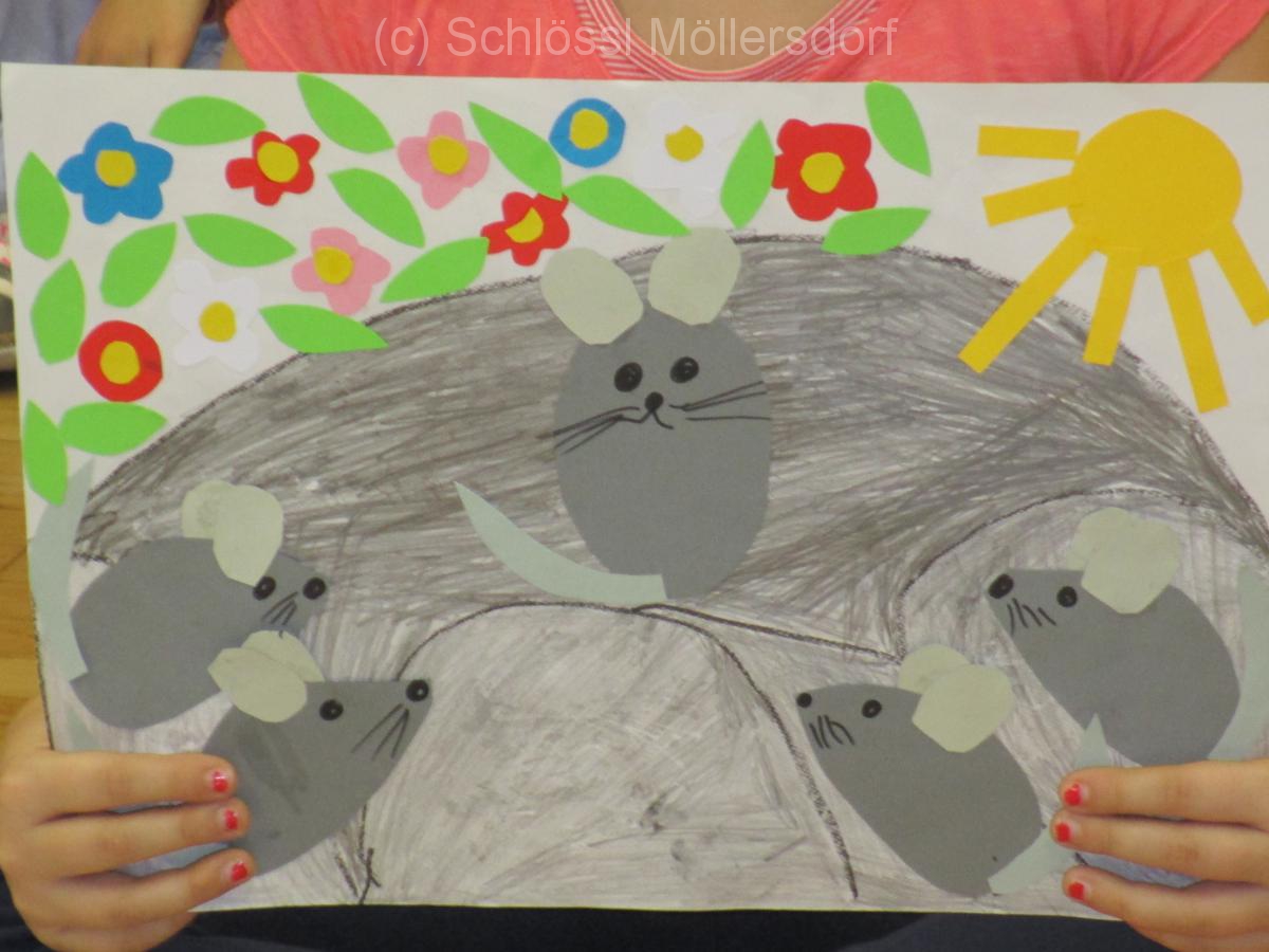 Heute waren die Maxikids wieder in der VS Möllersdorf. In der Klasse 3a von Frau Dipl. Päd. Gertrude Bartlweber, hörten wir die Geschichte von einer kleinen Mäusefamilie, die ihre Wintervorräte sammelt. Eifrig holten sie Stroh, Körner, Mais und Nüsse. Nur eine Maus, Frederick, sammelte Sonnenstrahlen, Farben und Wörter. Als der Winter da war, waren die Vorräte bald aufgebraucht. Da erinnerten sich die Freunde, dass Frederick auch etwas gesammelt hatte. Da erzählte Frederick von Farben, erzählte von warmen Sonnenstrahlen und von den gesammelten Wörtern. So schafften es die Mäuse bis zum Frühling. Anschließend durften die Kinder mit Hilfe der Volkschulkinder „ihr“ Frederick-Buch gestalten. Bevor wir wieder in den Kindergarten gingen sangen die Volksschulkinder noch ein englisches Mäuselied für uns.